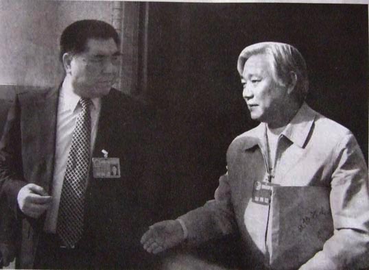 省政协委员、郑州古玩城懂事长蒋继明与省政协主席王全书在省政协九届五次会议上