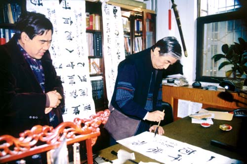 中国书法家协会主席张海为总编辑傅世光现场挥毫