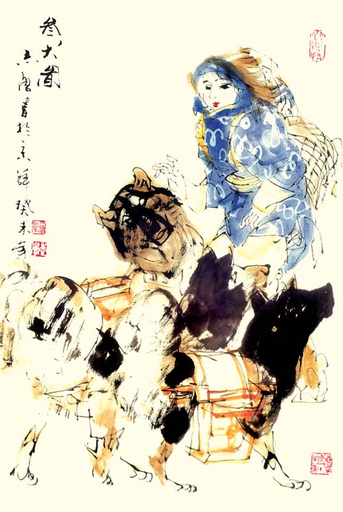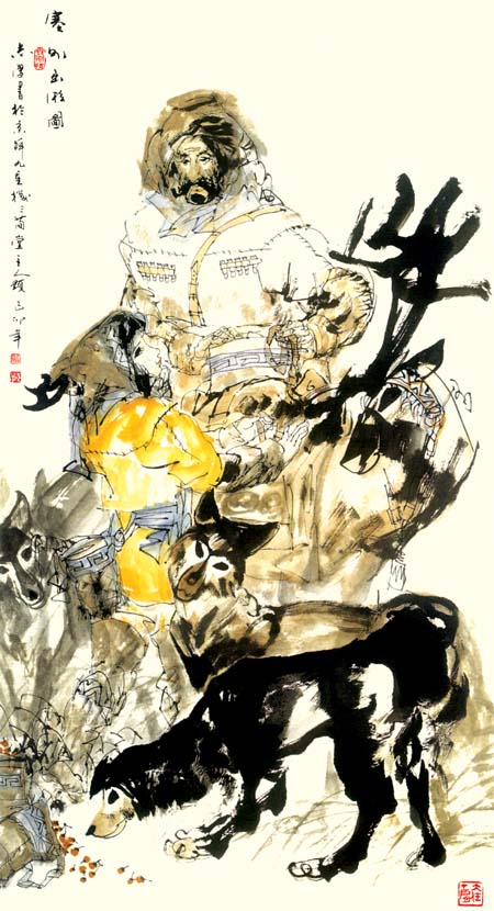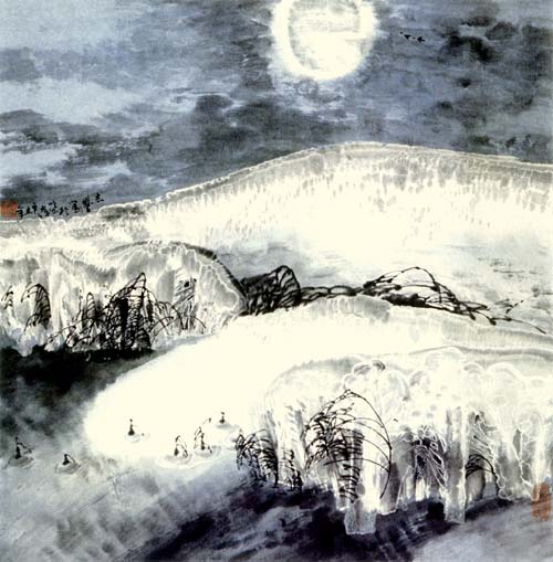 中国画在黑白表现方面,确有其丰富的传统,至今还值得借鉴。在画上的黑白,往往与虚实、轻重、疏密有关。黑是重,亦是密,即实;白是轻,亦既疏,既虚。这容易理解,但落实到画面,也就有了千变万化,绝不能以此划等号。有时候是黑是虚,白是实;有时于密处透白,白的如光眩目;有时于疏处或白处见黑,即所谓“亮墨”;有时在黑白对比中,画面上的白处显得分量重,黑处倒反显的分量轻,凡此等等,相互交错,关系互变,便使所画妙趣横生,神韵连绵。