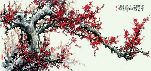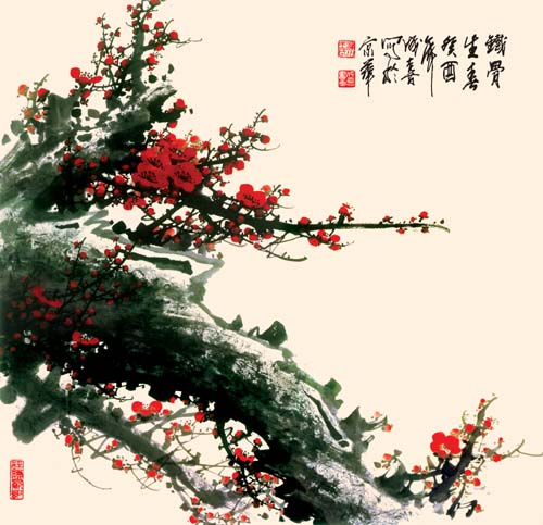 “梅花开在严冬,迎来的却是新春。它以韵胜,格高,临风傲骨、不畏艰险,冰肌玉骨、傲然挺立而成为我国的传统名花。”说起梅花,成喜先生一脸兴奋。他说,千百年来,我国人民把它作为坚韧不拔的奋斗精神的象征;把它作为高洁刚正、雅逸坚贞、仙风道骨、不染尘埃的高尚人格的象征。成喜先生以他的画作诠释他笔下的梅花品格。郭沫若在论毛泽东的《咏梅》这首千古绝唱时说:“这是把梅花人格化了,所咏的是梅花,其实也就是人,也是诗人自己。”绘画其实是有色彩的诗,我们赞扬成喜先生的画作,无论是梅是鸟是其它的事物都有一种鲜活感,给人以生气、以愉悦、以力量。成喜先生说:“我心目中的美是一切清新向上、鲜明生动、和谐愉悦、生机勃勃的东西,我努力去追求这种感觉,我千方百计地去寻求这种美。”