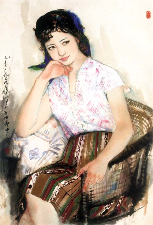 如果说,插图的从属性,多少贬损了插图本身作为一件绘画作品独立自存的美学品格,那么,林墉这一时期的人物写生,则有效地填补了这一缺陷,同时,又向我们提供了更进一步了解这位画家的内心情感的变化和艺术风格的发展视角。我们应该注意到,“写生”——特别是人物写生——在20世纪的中国画艺术中,经常被视为训练一个画家的写实技巧或为某一件主题性作品的创作搜集材料的途径。林墉却以其富于说明力的方式,有效地证明了写生独立自存的价值。正像我们所看到的,林墉选择写生的“人物”,绝大多数都是他熟悉的漂亮朋友,在过去类似的场合被明确界定并突出强调的“阶级身份”包括“职业特征”,在这里被明显地淡化了。显然,林墉感兴趣的是人之为人的生命属性,他想强调的是一种价值理念:美,是人之为人的本质,它即是自在的本体,也应该成为人与人之间互相吸引、互相欣赏的对象。因此,美,成了这一时期林墉所有的人物写生视觉焦点。与此同时,他把西画的补色概念成功地引入了中国绘画语言中,以明确、精细的轮廓线条和反复晕染、浑然天成的体积结构,迅速重建了自己优美的写实主义风格。提到林墉这批人物写生,我想还有必要强调的是,如所周知,在过去很长的时间内,按照某种预设的价值逻辑,真正的“爱”必须建立在刻骨的“恨”的基础上;强调在思想上必须时时刻刻“绷紧阶级斗争这根弦”,作为明确的价值理念进入艺文领域,目的似乎只有一个,就是教导读者如何学会憎恨。我们也许不能夸大地说,林墉这批写生人物画是当代中国绘画史中的奇迹,但至少可以这样说,它在“文革”结束不久、阶级斗争的炮火硝烟还没有完全尘埃落定的时候出现,是当代中国恢复人生的尊严和爱美之心的征兆!
