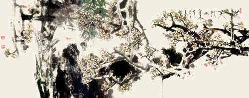 近年,难以逆料的大病在某种程度上改变了林墉的生活方式的同时,是否改变了林墉的人生态度和艺术风格,这是一个普遍关心的问题。用林墉的话来说,“在上海做伽玛刀治疗那段日子里,我曾大哭三场。”换言之,他不是圣人,他不可能对生死抱绝对顺其自然、超然乐观的态度;当然,他也不是庸人,所以,至少在广东美术圈中,没有人能够对林墉的生死漠然视之。林墉的生之焦虑,直接地表现在他的绘画中,并顺理成章地形成了他这一时期的大部分作品的基调——于滞涩中追求奔放的紧张感。尤其是,当生理机能的损伤一度阻遏了他一向流畅灵活的笔法挥洒的时候,寻求思想自由和艺术自由的欲望就更加强烈了。林墉病中完成的大量作品在风格上呈现的驳杂的变化,以及有时未免失控而显得过分张扬的笔法、色彩,正是基于病变,当然也包括围绕林墉的病变而出现的世道人心的“病变”所迭构的多重矛盾的写照。如果说,正像类似的情形——据说所有与阎王打过照面又回来的人,都能够进入了然顿悟的精神境界的话,那么,林墉最近的山水画实践,可能是一个合适的证例。关于他的山水画,我在此前所写的小文中已有简略的讨论,我把澄澈透明而趋于宁静幽玄的林氏山水,看做一个从地狱重返人间的智者“任性逍遥,随缘放旷”的心境的再现。虽然这里的山水草木并不取决于“写生”这一先决条件,林墉在山水画实践方面也缺乏一个系统训练的前提,然而,可能恰恰正是这种类似“空白”的状态,有效地消除了林墉的语言负累,为趣味的选择和笔墨的游走,提供了充分轻松自由的空间。我想再补充的是,珍视上天的眷顾,珍视生命,珍视大自然赋予我们作为万物之灵的一切,是林墉进入艺术自由惟一的门槛。至于他究竟是否想通过这种病后的努力来重建与古典传统的联系——或者更具体地来说,究竟是否想洗耳恭听来自黄宾虹一类传统主义的教诲,在我看来,那是一个无关紧要的问题。