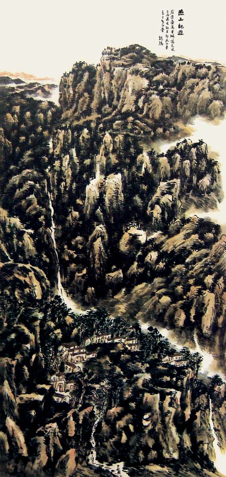 龙瑞先生虽然主要是一位画家,但凭他现有的学术地位和阅历,当然会有这样的文化“大局观”。他正是在这种“大局观”的视野中来考虑中国绘画的发展前程和自己的艺术探索的。从80年代一直到今天,从李可染到黄宾虹乃是他切入中国文化和艺术文脉的一个探索历程.据我揣度,在龙瑞心目中,黄宾虹和李可染一定可以作为中国绘画“文脉”的现代的突出代表。有的人认为,龙瑞先生虽然出生于南方(四川),但却具有北方人的气质,这与李可染山水画中那种沉厚深稳的品格是相呼应的。李可染虽然注重写生,但他那种洋溢着自然气息的画风中依然蕴含着传统经脉——这种经脉不是传统山水画中的那些“程式”语言,也不是明清文人的淡逸的笔墨情趣,而是从白石老人的绵韧浑朴用笔中体悟到了“一画”之精神。由此而能“参天地之化育”、“贯山川之形神”。我认为,李可染对龙瑞的意义就在于以这种涵纳“一画”精神的用笔铸造了自己绘画之“形骨”。以此为基础,龙瑞进而走向黄宾虹。其实李与黄的画风是相通的(主要是李对黄的续承),尤其是在对龚贤山水墨法的体会上,两人可谓同属一个衣钵。但黄宾虹的山水之“墨”是“写”出来的,而李可染的山水之“墨”是积出来的(这一点,李与龚更近),我想,可能是渗透在黄宾虹浑厚华滋山水笔墨中的“写”的气质进一步打动了龙瑞。应当说,黄宾虹的“写”的笔墨气质比李可染的“积”墨显然包含了更多、更深远的传统精髓。有的学者指出,黄宾虹用笔(线条)是“绵里针,含蓄内美,风骨儒雅,从容谦和”,可谓,“率性而成其道”、“极高明而道中庸”。他的用墨浑厚华滋,“就像大地一样,一片生机,一片沃土,穆如春风,静如处子,渊如大泽,厚如古原,润如湿陂,道尽“坤阴之德”。”正是这样,黄宾虹的山水画成为龙瑞主要的心仪对象,成为他把握中国绘画“文脉”的重要入口就一点也不奇怪了。