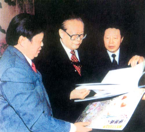 2001年1月13日江泽民主席在中南海亲切接见喻继高先生。
