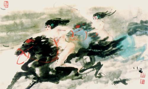 一位评论家直言,小石的人物画不亚于父亲傅抱石。我想,倘若抱石先生还健在,看到儿子跨越了生命的鸿沟,创作出那么多可以代表当今人物画艺术高度的国画,一定会含泪同意那位评论家所言的。