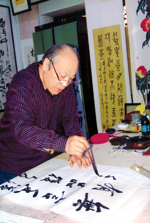2004年4月, 在北京举办书展,杨老以92岁高龄为我写下300多次的序言,还题写3米长的竖标。