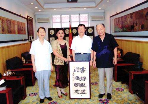 本刊总编傅世光、北京总参管理保障局大校参谋甘良东与著名文物鉴定家