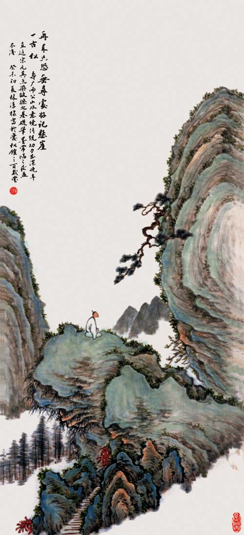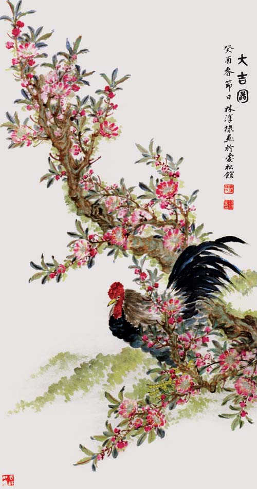 创作态度严谨是林松年一向的作风,起稿、拷贝、白描、勾勒、赋色、渲染、点苔、落款、钤印均一丝不苟。他每次打稿前必悬之于壁,如痴如醉推敲至十分成熟才正式下笔。我有幸多次观其作画,他作画时精神高度集中,进入忘我之境,也正因为如此,他才得以在狭窄画室里创作出许多的绘画精品。