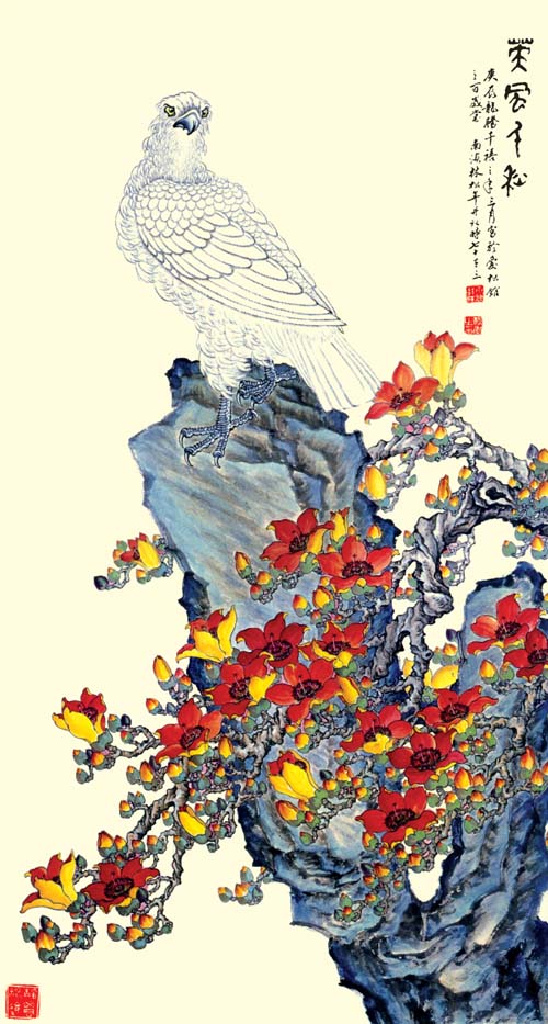 2006年深秋与林淳创作《丹凤瑞猿图》留影