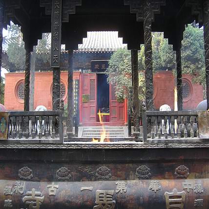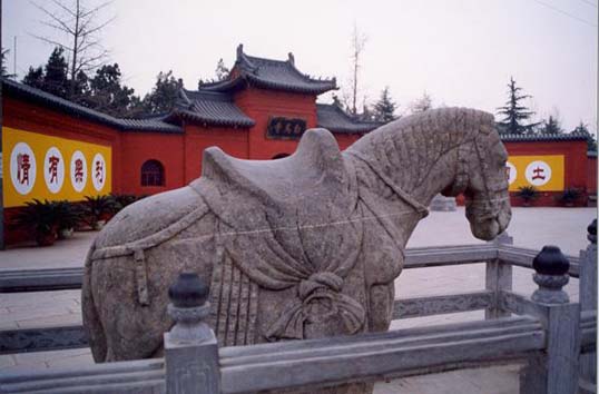 在河南洛阳市东郊一片郁郁葱葱的长林古木之中,有一座被称为“中国第一古刹”的白马寺。这座 2000多年前建造在邙山、洛水之间的寺院,以它那巍峨的殿阁和高峭的宝塔,吸引着一批又一批的游人。