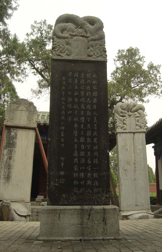 比干墓为中国第一座有记载的坟丘式墓葬,墓葬以其历史悠久、布局完整、规模宏大、文化积淀丰富等特点,占有举足轻重的历史地位,称为“天下第一墓”。比干庙内保存着很多有着重要价值的文物古迹,碑碣林立,其书法、雕刻、建筑风格都有很高的品位和历史价值。从春秋时期的孔子剑刻碑到清朝乾隆亲书御碑,共64通,几乎含盖了我国历史上所有朝代。孔子剑刻“殷比干墓”碑,是迄今发现的唯一的孔子真迹,被誉为“天下第一碑”,北孝文帝的《皇帝吊殷比干墓文》相传为南北朝著名书法家崔浩书,为魏碑精品之上。清乾隆御书的《过殷太师墓有作》为端正的楷书,笔韵严整雍容,华丽端庄,显帝王之风。碑廊左侧第四通石碑,为清朝刘希龙所写的行书“三代孤忠”四个大字,气势磅礴,端庄得体。碑中精品还有唐太宗的《封殷太师比干诏》、《祭殷太师比干文》,元朝刘敏中的《赦修比干墓碑》等。这些都是举世名碑,是我国古代书法艺术的丰富宝库。庙内的特色植物开心柏、板柏、没心菜形成了奇特的自然景观。