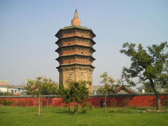 文峰塔位于安阳市古城内西北隅,高38.65米,周长40米,因塔建于天宁寺内,原名天宁寺塔;又因位于旧彰德府文庙东北方,作为代表当地“文风”的象征,故又称文峰塔。文峰塔建于五代后周广顺二年距今已有一千余年的历史。虽经历了战争年代的炮火考验,至今依然屹立,巍峨壮观。