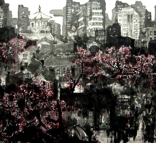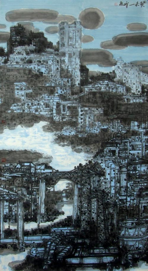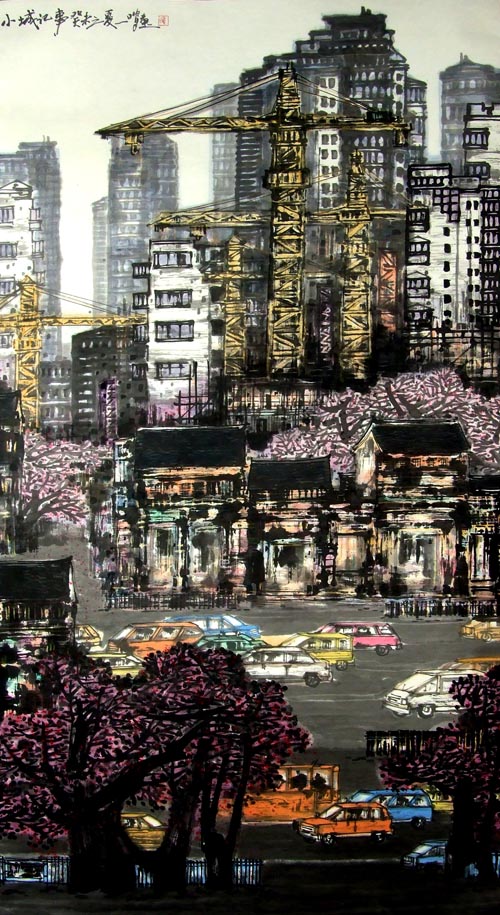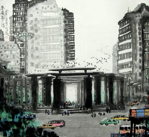 河南收藏网张祥龙与开封中国画研究院副院长、画家王一鸣留影 王者风范画中情 一鸣惊人写汴京 ——记著名城市山水画家王一鸣 ■傅世光 古城卫辉,地处中原,南临滔滔黄河,西依巍巍太行,历史上素有“南通十省,北拱神京”之称。黄河、太行的灵秀,培育出一代又一代文人墨客并非偶然。在老一辈艺术家秦岭云、卢光照的影响下,有作为的中青年画家正在茁壮成长,著名城市山水画家王一鸣就是太行、卫水蕴滋之秀,他凭借手中之笔,展现惊天画卷,高歌动地诗篇,绘锦绣中华,写古城汴梁,有王者风范,一鸣惊人。 王一鸣生在卫辉,长在开封,他自幼喜欢绘画,虽然参加了工作后他子承父业从事医疗工作,但从骨子里透出的对绘画艺术的热爱使他对画笔恋恋不舍。 1974年,一次偶然的机会,使他终生和绘画结下了不解之缘。那一年,五台山著名画师法成师傅患病住进了河南省结核病医院,当时王一鸣的父亲正好在法成师傅所看病的科室当主任。到医院看望父亲的王一鸣便和法成师傅相识。也许是心有灵犀的缘故,法成师傅喜欢上了王一鸣,便教他画画,还赠给王一鸣一些绘画方面的书。 认识法成师傅后,王一鸣对绘画就不单单停留在喜欢上,而是按照法成师傅赠送的《芥子园画谱》等教材,开始钻研起绘画艺术。一年后,他的画技有了长足进步,深得法成师傅的赏识。1980年,王一鸣背起画夹,跟随省书画院著名画家刘书民到太行山写生,此举,奠定了他一生从事美术事业的基础。 要说太行卫水蕴育了王一鸣的灵感,那么古城汴梁就给了他创作的源泉,开封的陋街旧屋,老槐小巷,古塔陈迹等等都向他绽放出千古之美和人情之美。这七朝古都的开封,世世代代的老开封都居住在这里繁衍生息,因而他所描绘的这一切便都是这里老开封人生命的血与泪所凝聚的啊!而这里的每一点改变也都展示出当今开封人前进步伐中的喜与乐。当明天这一切又全都改变之后,那王一鸣的这些作品便也都成了历史的见证与珍宝了。 王一鸣是当代山水画坛颇具个性与独创精神的画家,他身居古都便以一系列表现城市风光和都市生活山水创作开创了“城市山水画”这一新的领域,产生了强烈的影响。这是一个开拓性的创举,他的作品洋溢着浓郁的现代气息和个人的独特风貌,有一股清新奇丽、灵透空濛之气。没有因袭循短之感,却有新颖独特之趣。既保持了中国写意画的酣畅、淋漓,又吸取了西画抽象造型的自由。点、线、面归纳入黑、白构成的形式框架,运用的灵活自如,塑造出他胸中的梦的世界。 他的作品“古城汴京”、“汴梁新貌”跳出了板滞、僵直之弊,把古城墙与现代高楼大厦结合起来、相映成辉。用笔潇洒自如、粗率中显出大刀阔斧的气概,特别是那错落有致的楼层,前景交错涌动的人流和车辆,真是车水马龙,加之那繁茂的树荫涌出了城市的活力。 作品“御街风情”作者用精致的笔法,重视水墨和线条在画面中发挥的奇妙功能,讲究虚实变化和大的疏密、黑白、浓淡的对比,大片颜色板而不滞、直中有曲、曲中有韵,色彩辉煌而又有雅气之感,反映的开封都市风光、到处闪耀着七朝古都的古典文明,繁华的光辉,创造出人们心仪中神圣、庄严的城市。 “开封胡同”是开封一道亮丽的风景线,作者采取了点、线、面与色彩的有机结合、强化了作品的感染力和抒情性,使作品独具艺术魅力。尤其是他的国画长卷“汴京八景”,集诗书画意于一体,把开封美好景色和自强不息的精神汇集于长卷之中,填补了古人没有留下完整的“汴梁八景图”的空白。 作品《日月不管人间事》。画面那深邃浩茫,超时空的日月并行,建筑群飘浮云雾之间,神秘而旷达,令人暇思。感到作画者深沉的呼吸、思考、希冀。《海市蜃楼》似梦非梦,画家的思绪徘徊于奇幻的天地之间。传统水墨技巧充分发挥了优势,水与墨相互渗透,正表现了视幻觉的变化莫测。《山城印象》是物、我两忘,又是主、客观交融。是客观造化的山城,又是梦呓的山城。墨块排列、线条交错,音律的节奏徐徐有声。作品《初春》,它似乎又让我们从梦中苏醒,返回人间清旷、水天一色的原野,这是作者对我们生活环境真挚的、细腻的爱。这爱还表现在《正月初一》那银子般的世界里,大地一片浩白,村落栖息在漫天大雪的迷蒙之中。村舍里忙了一年的农人,正沉浸在团圆的幸福中,笑语正弥漫在团圆的幸福中,笑语正弥漫在飞雪中向原野飘散。一鸣的爱多么纯净而又静谧。没有喧嚣、没有瑕疵。 总之,王一鸣的城市山水画形成了自己独特风格,形成了一种势力,一种倾向,集中西艺术精华于一体,以现代审美为原则,坚持在生活中撷取创作美感,他的作品到处洋溢着浓郁的现代气息和个人的独特风貌。观看王一鸣的作品会使你耳目一新,很有启迪。他的画形成了自己的鲜明艺术风格,他的劳动是开拓性的,有其积极的现实意义,说一鸣惊人真不为过。 这些成绩对他来说并没有放在心上,而是耕耘不止。且听著名画家丁中一对他的评价:“一鸣是个不知疲倦,一天内除了画画还是画画的人,因为这会给他带来无穷的乐趣。当毛笔饱蘸水分和墨色一起融渗在纸上时便是他神采飞扬不知所措之时。他用笔神畅不作扭妮与滞疑,率直而为。故而笔笔着纸直抒胸臆,作品让人一目了然,毋劳你费神思量。这便与他的为人与个性全然地一致了。一个热情而不知掩饰