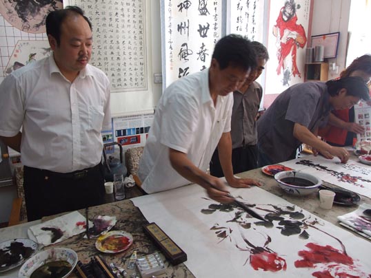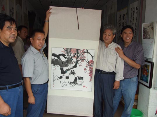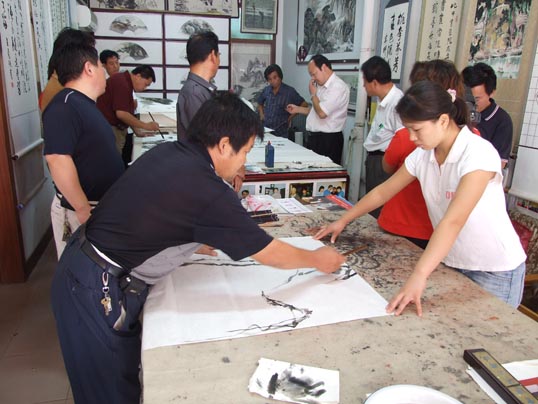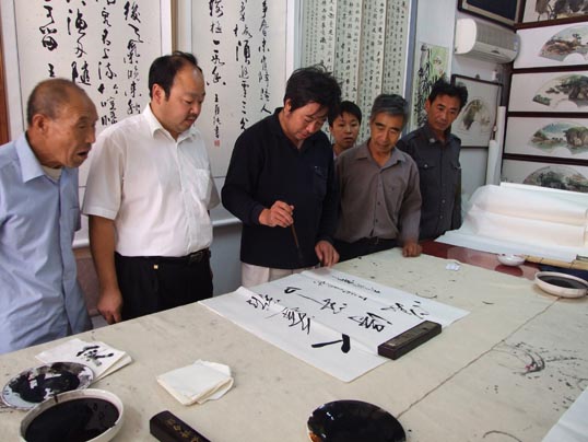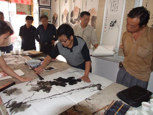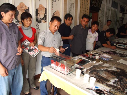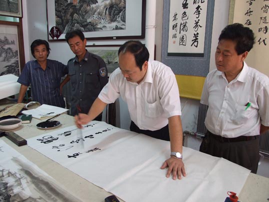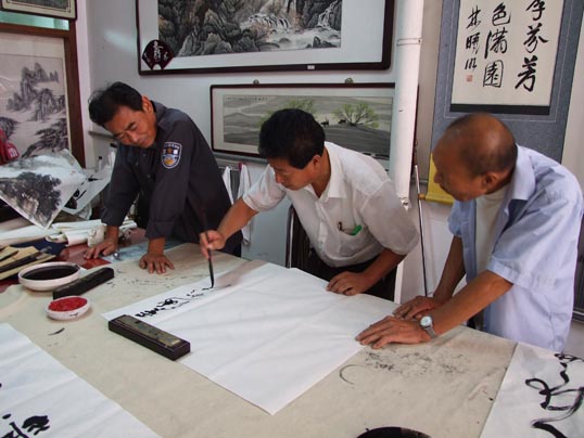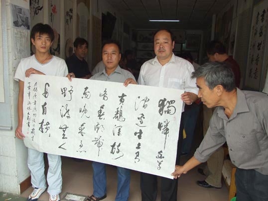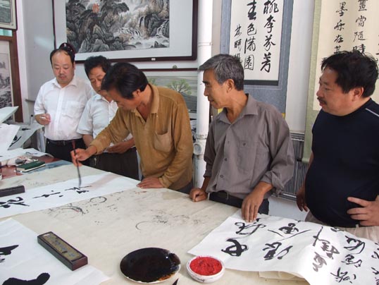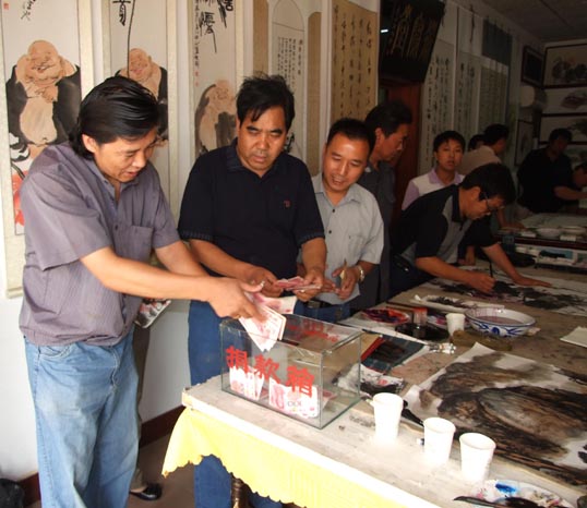 在《华夏精英》杂志社、河南收藏网、河南省卫辉市有关部门的倡议下,王一鸣、张志泉等16位书画家相聚中国比干书画院挥毫泼墨,为国家一级美术师卢世明义捐治病。