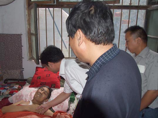 下午,在中国比干书画院院长傅世光的带领下,大家驱车十多公里来到卢世明农村的家里,将义卖得来的7000余元现金交给卢老师的妻子。