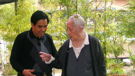 傅世光与108岁画家晏济元在四川家中亲切交谈