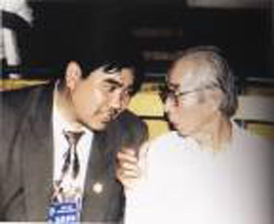 中央文史研究馆馆员、齐白石高足、花鸟画大师卢光照和傅世光亲切交谈。