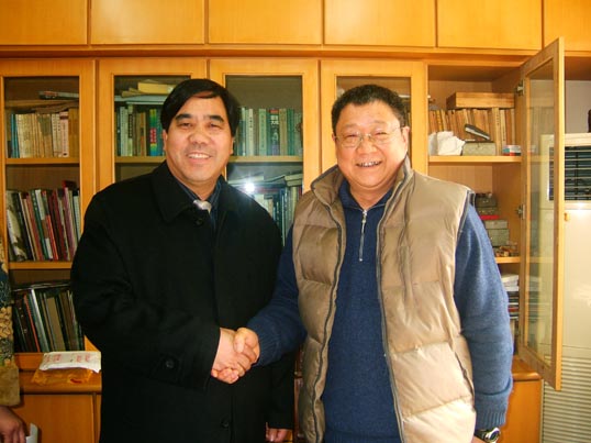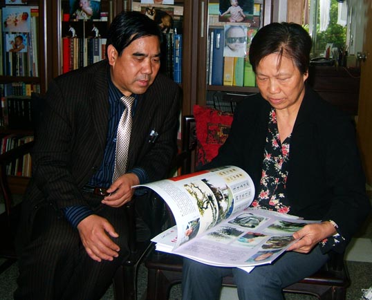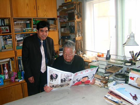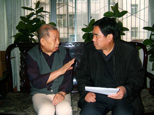 傅世光与上海市文联、书协副主席王伟平在家中留影。