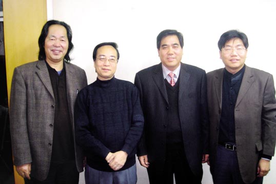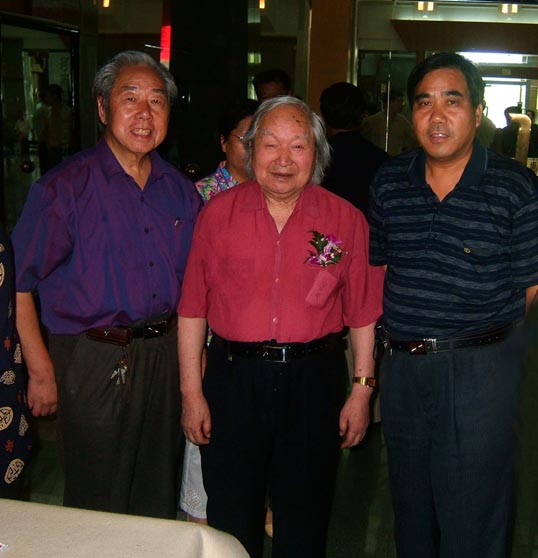 傅世光与书画家唐玉润、王耀邦在郑留影。