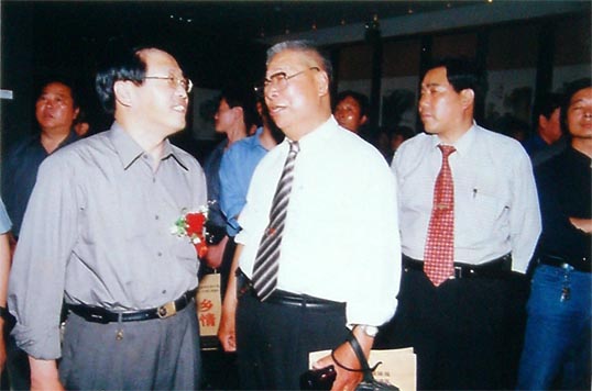 国务院参事室主任徐志坚、新乡市委书记吴天君、中国比干书画院院长傅世光在郑州参观乡情画展。