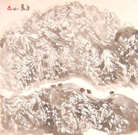 刘万年四尺斗方山水画