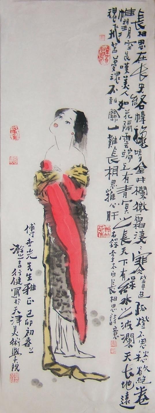 裴行健仕女图 90×33CM