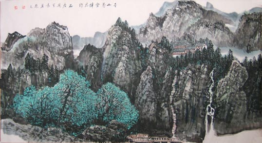 石庆骥六尺山水千山万壑伴君行