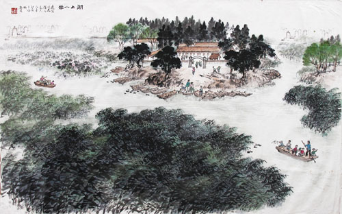 《湖上小学》59*95cm 约5.04平尺,为刘先生1978年之作,具备鲜明的时代特色,为刘鲁生先生之佳作。