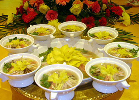 洛阳水席的特点:一是有荤有素,素菜荤做,选料广泛,天上的飞禽、地下的走兽,海中的游鱼,地里的菜蔬均可入席。可以根据设席者的经济状况,可简可繁,丰俭由人。 二是有汤有水,味道多样,酸、辣、甜、咸俱全,舒适可口。三是上菜顺序有严格的规定, 搭配合理。 如果去"九朝古都"洛阳,人们大都会向你介绍"洛阳三绝":洛阳水席、洛阳牡丹、龙门石窟。而现在,不用出京城,在南礼士路的"厚德福"酒楼, 您就可以品尝到有着1000多年历史的洛阳水席。