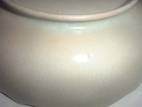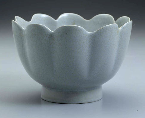 北宋时期官府在汝州设窑场,其产品称之为“汝窑”。“汝窑”出现的时期在越窑衰败之后,产品主要供宫中御用,御拣退之件,方许出卖,近尤难得。汝窑胎质细润,多数象点燃过的香灰色。透过釉底处微微带些粉色,不同于同时期的其他青瓷,风格独特,呈现一种淡淡的天青色,有的稍深,有的稍淡,但离不开天青这个基本色调。汝瓷釉汁莹润,多豆青、粉青、月白、葱绿等。通体有细片,底有芝麻细小支钉,是支烧的痕迹。现存故宫博物院的“汝窑弦纹尊(奁)、洗”,是古陶瓷中罕见的珍品。