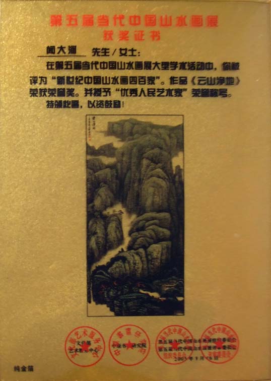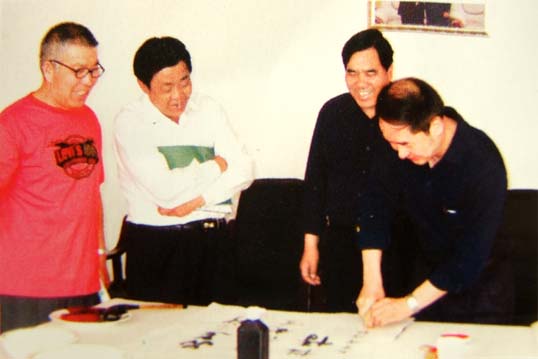 闻大河与中国美协原常务书记雷正民、北京奥凯立董事长卢甲举、其女闻超留影