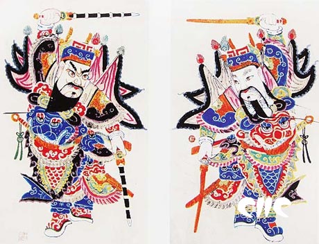 我国历来有贴年画的风俗,特别在农村更为讲究。每到年关临近,生活再困难的人家,也要买些年画贴到门上。如若谁家不贴年画,就被认为是丧事在身。年画不仅增加了过年的气氛,而且表达了劳动人民的朴素意愿。像五谷丰登、宅院安全、子孙繁盛、辟邪驱灾等信念,都在年画中表现出来。不同的人对年画的欣赏角度也不相同,选择内容差异很大。就门神来说,老年人多选福禄寿;媳妇们多选麒麟送子、和合二仙;孩子们童趣十足,会把五子夺魁作为自己的理想之物;而家中的一家之主,一般都要选些钟馗、尉迟敬德、秦琼像贴在宅院的大门上。