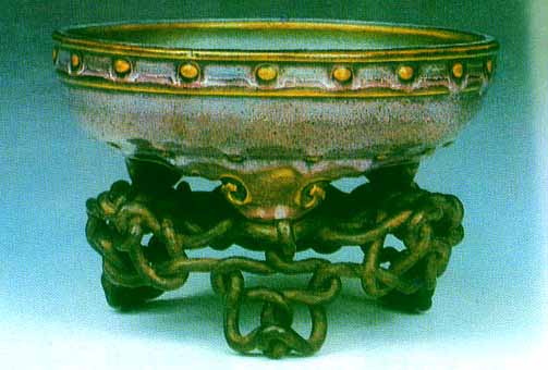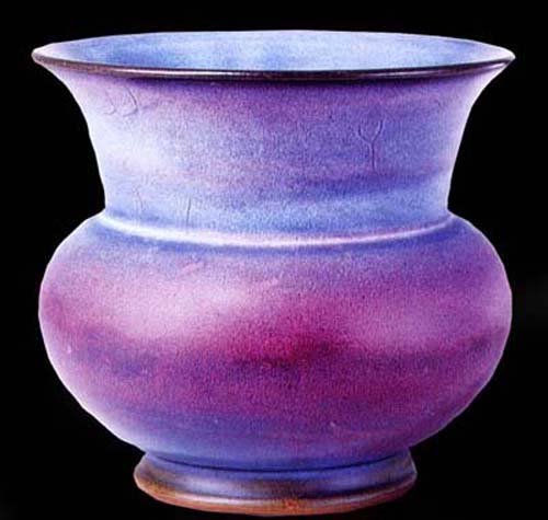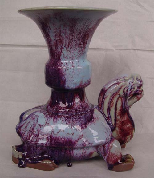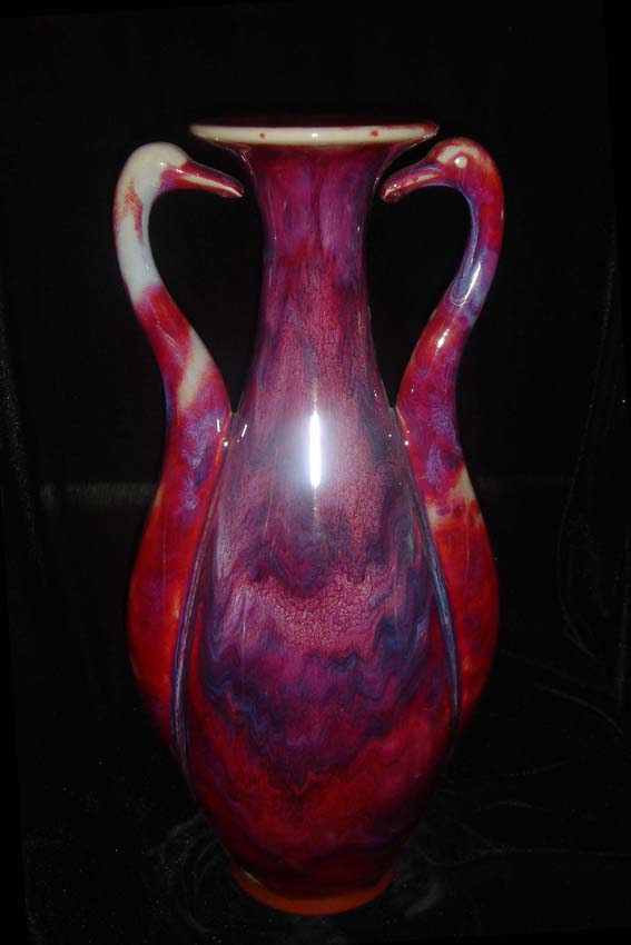 禹县神垕镇,世称钧瓷之都。钧瓷是我国著名的工艺瑰宝,已有一千多年的生产历史。 钧瓷,以其色彩艳丽、艺术风格独特闻名中外,久享盛誉。在国外,钧瓷被称为"中国宝瓷",是难得的艺术珍品。钧瓷不但在色彩上鹤立它瓷之上,在造型和施釉方面也独辟蹊径,自成体系。钧瓷色彩之多,不胜枚举。最著名的有:玫瑰红、海棠红、胭脂红、鸡血红、朱砂红、茄色紫、葡萄紫、鹦哥绿、葱翠青、梅子青、天青及窑变的各种色彩。相传以胭脂红、葱翠青和墨色为难得之佳品。 钧瓷造型以端庄、浑厚、古朴、文雅为特色。钧瓷器皿,棱角分明,线条优美,文饰简练,雕塑别致。钧瓷传统作品尊、鼎、钵、洗、瓶等陈设品,置之庭室,富丽堂皇,满屋生辉;陈之几案,赏心悦目,雅致韵人。 钧瓷胎质,陶治清纯,坚实细腻,扣之其声如罄,清脆悦耳。钧瓷的釉质深厚透活,晶莹玉润,有明快的流动感。釉中常常呈现出珍珠点、鱼子、菟丝、蟹爪和蚯蚓走泥似的纹路。古人用"五光十色润如玉","钧与玉比,钧比玉美"来赞美钧瓷釉质的纯净和釉色的艳丽。钧瓷的釉色,各不相同,有的一器一色,有的一器多色,但却找不到两件色彩完全相同的产品。这就是人们说的"钧无双配",也是钧瓷独特艺术风格的一个方面。 钧瓷独特的艺术风格,历来为国内外各界人士所赞赏。钧瓷的经济价值更为同行业所重视。