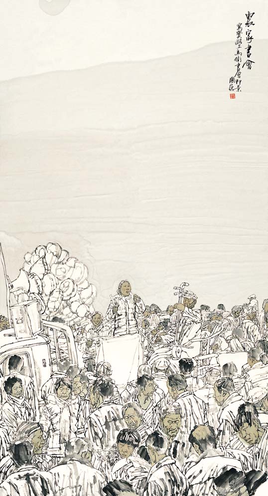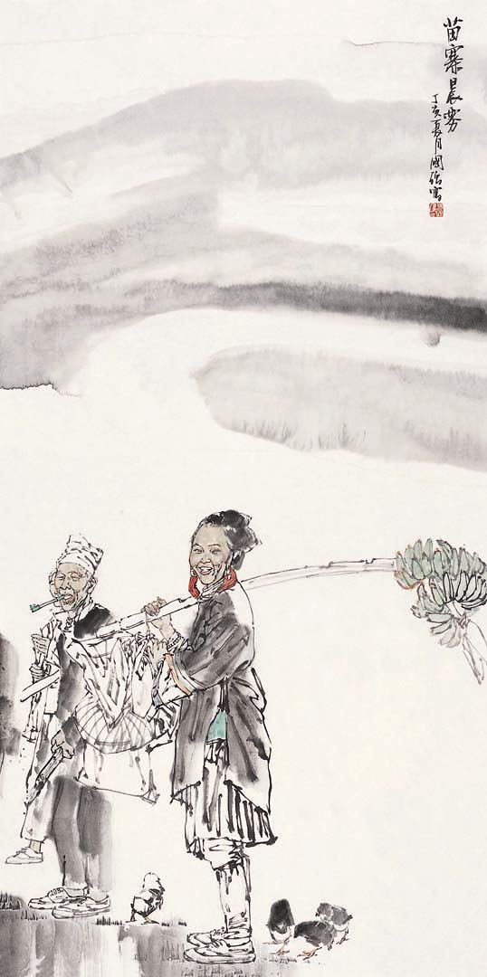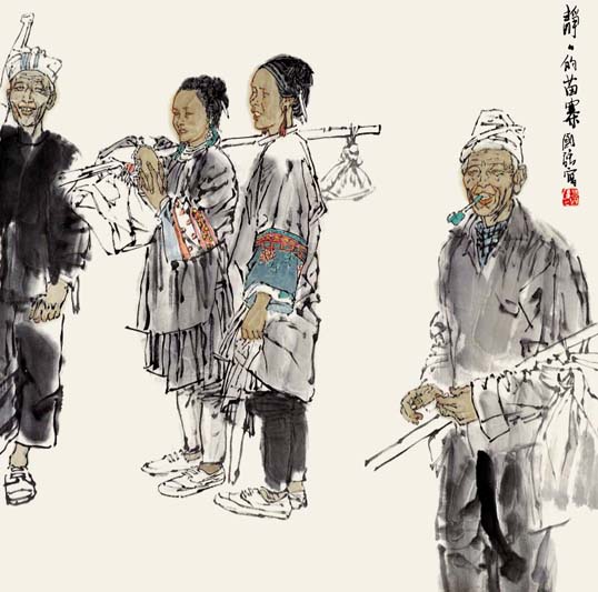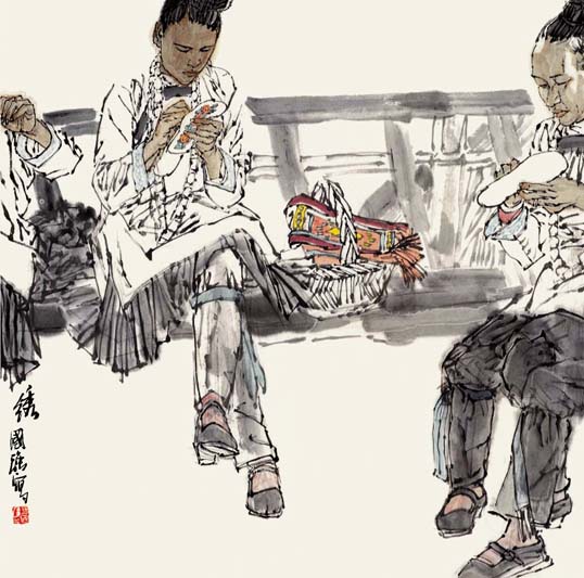 开阔的人文视野,清醒的现代意识,丰厚的生活底蕴,内在的诗人气质,加之坚实的写实功夫和纯熟的笔墨技巧,为他在国画人物界凝就了一道诱人的国强风景线。