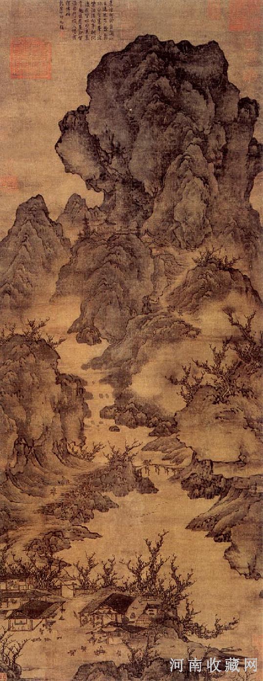 《关山行旅图》绢本,水墨,纵:144.4厘米,横:56.8厘米 。现藏台北故宫博物院。