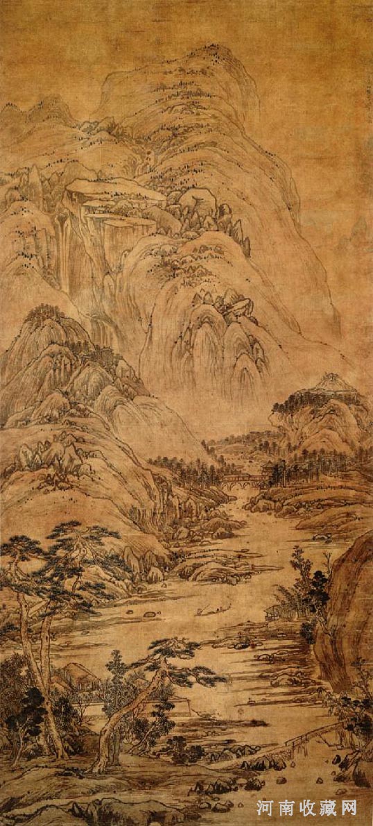 《山水图》立轴 纸本 设色 纵327.9厘米 横106.8厘米,现藏上海博物馆。