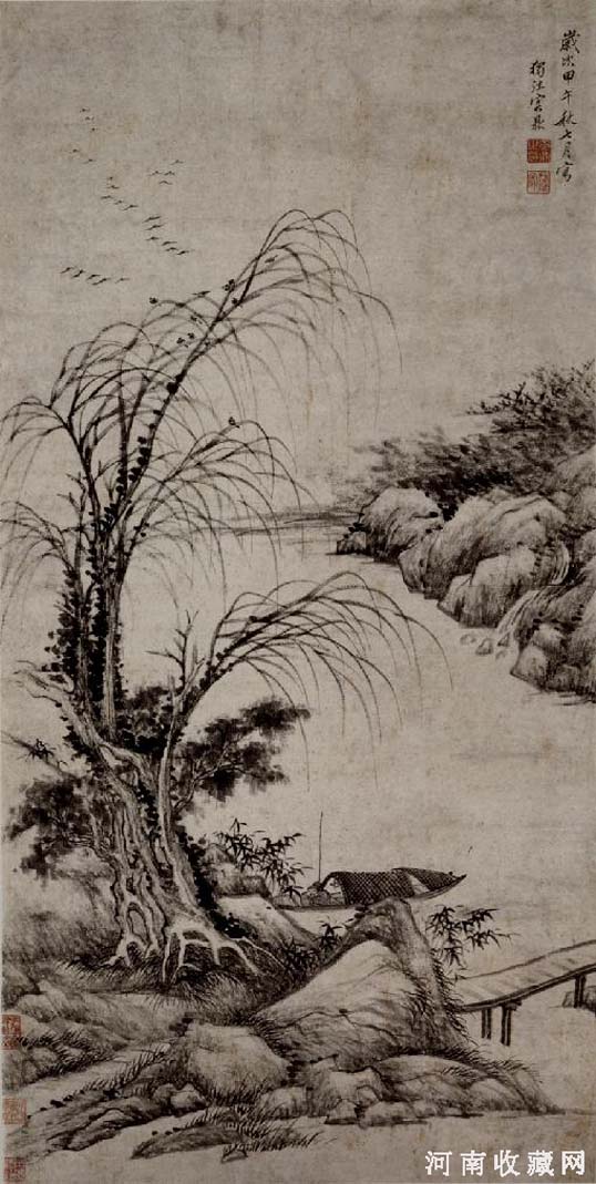传世作品有康熙四十九年(1710)作《倚石援云图》,图录于《神州大观》;五十年作《渔父图》卷藏故宫博物院;五十三年作《平冈渔艇图》轴藏沈阳故宫博物院;《醉儒图》《夕照疏林图》轴、康熙三十七年(1698)作《渔父图》轴藏上海博物馆。