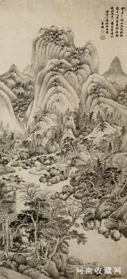 王鉴(1598-1677),字玄照,后改字元照、圆照,号湘碧,自称染香庵主,明·昆山州太仓(今江苏省太仓县)人。为明代著名文豪王世贞之曾孙,王庆常之子,家富收藏,明·崇祯六年(1633年)应乡试中癸酉科进士,出任广东廉州知府,人称王廉州。擅画山水,早年受董其昌“学画唯多仿古人”影响,一生专注伤古,之后创立新风格。精通画理,自谓“皴擦无自撰之笔”。明末清初著名书画家、收藏家。