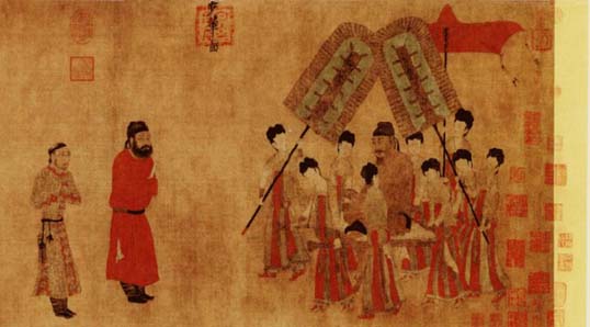 不难看出,人物的身份与地位是作者考虑画面安排的主要依据,社会的伦理关系在绘画中进一步反映为绘画表现的视觉关系。可以说,阎立本的这幅作品为说明传统儒家思想对绘画发展的影响提供了明晰而典型的图示。