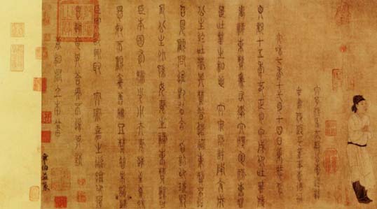 此图上有宋初章友直的小篆题跋,叙述了相关的故事,并录唐李道志与李德裕“重装背”时题记两行。也有人认为是宋代的摹本。