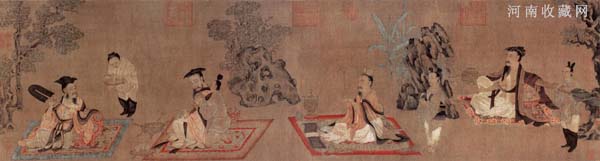 孙位的画迹在宋代时尚有30余件,但传至今天,仅剩《高逸图》一件。卷首有宋徽宗赵佶的瘦金体题字“孙位高逸图”。图中描写魏晋时“竹林七贤”的人物故事,现存山涛、王戎、刘伶、阮籍四人,七贤中还有稽康、向秀、阮咸三人,在北宋时已缺佚。图中四个主要人物分别列坐于华美的地毯上,旁各有一名侍童,人物造型栩栩如生,风度翩翩,形神俱备。