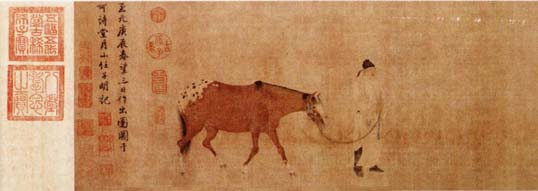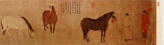 《出圉图》绢本设色,纵34厘米 横201厘米,现藏北京故宫博物院。