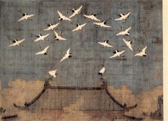 在绘画方面,他的花鸟、人物、山水,描绘工细入微,尤其是花鸟画,设色均净,富丽典雅,笔墨精妙,造型生动,神形兼备。据记载,他画鸟用生漆点睛,隐出纸面。《画继》说他“独于翎毛,尤为注意,多以生漆点睛,隐然豆许,高出纸素,凡欲活动,众史莫能也。”[3]据史籍记载,赵佶曾命令画院画家将宫苑中异花珍禽一一图绘,凡15种为1册,累至千册,名曰《宣和睿览册》。宋徽宗崇信道教,大兴道观,至政和七年(1117)自封为“教主道君皇帝”。道教的崇信虚无酷好玄学,主张归真返璞等等,均渗透于徽宗的笔墨之中。