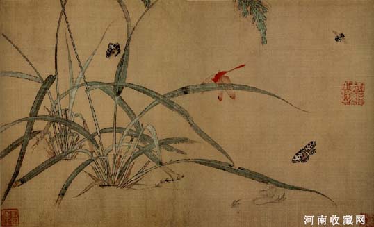 吴炳,毗陵武阳(今江苏省常州市)人,生卒年不详,南宋光宗绿熙年间(1190-1194)画院待诏。光宗皇后李氏爱其画,恩赉甚厚,赐金带。工画花鸟,元代夏文彦《图绘宝鉴》谓其画“写生折枝,可夺造化,彩绘精致富丽”。所作谨守院体画风格。画迹有《春池睡鸭图》《山茶鹁鸽图》《鸳鸯瑞莲图》《宝珠玉蝶图》《折枝绛桃图》《折枝芍药图》《鸡冠花图》《玫瑰图》《长春图》《水仙图》等43件,著录于《南宋院画录》,均“简易有生趣”,“精彩如生”。传世作品有《出水芙蓉图》及《嘉禾草虫图》,现藏故宫博物院;《竹雀图》册页,绢本,设色,纵25厘米,横25厘米,画下侧署款“吴炳画”3字,是吴炳之代表作,藏上海博物馆。