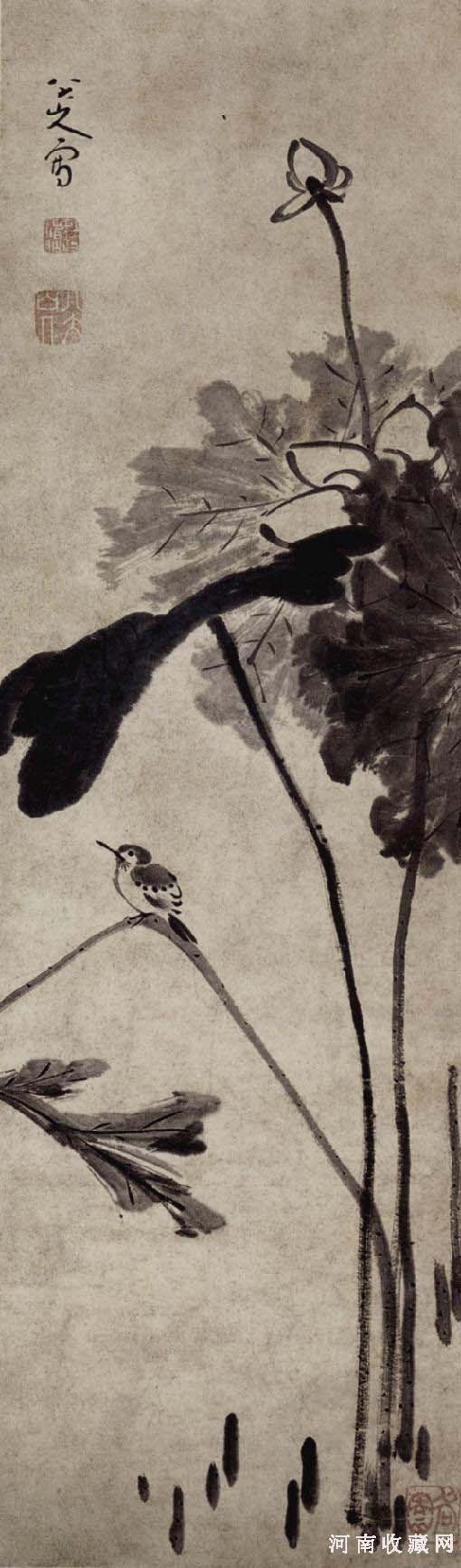 朱耷,即八大山人(1626—1705),明宁献王朱权的后裔,原名统銮,南昌人。明亡后削发为僧,字雪个,因尝持八大人觉经,故又号八大山人。。别号驴汉、人屋、刃庵、驴屋驴、人屋、个山、朱耷等。四位僧人画家中,八大山人是最“格色”的,他为人怪癖,艺也诡奇,时人认为他的画“人多不识,竟以魔视之”。