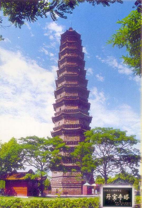 铁塔,原名开宝寺塔,又称灵感塔、上文寺塔,因外壁镶