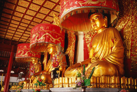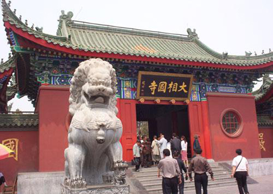 天王殿里,体态肥大的弥勒佛慈眉善目、笑口常开,那模样真惹人喜爱。“大肚能容,容天下难容之事;慈颜常笑,笑世间可笑之人。”每逢见到弥勒佛,我总爱多看几眼,因为它会使你忘却烦恼,开阔心胸。天王殿后的第二座佛殿特别雄伟,这是相国寺的主殿大雄宝殿。一群群善男信女手捧比人还高的香烛,在佛像面前虔诚地行礼、跪拜,烟雾缭绕。
