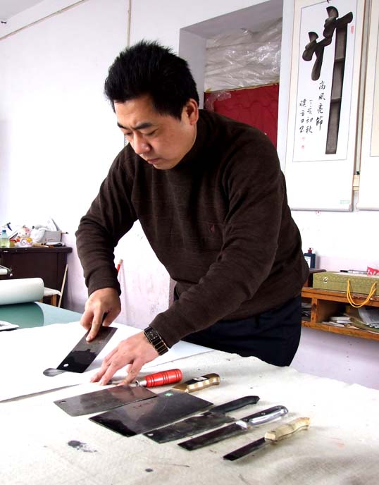 2003年濮阳县文联主席王濮方带领该县刘丽、高九玲等部分书画界知名人士,打破陈规戒律,以大小不同的刀具为书画工具,研创了一种全新的书画形式——东方刀书画。由于刀书画技法独特,作品鬼斧神工,自然天成,具有较高的艺术价值,已得到社会各界的重视和认可,作品流传美国、加拿大、英国、澳大利亚等30多个国家和地区,2005年10月,濮阳东方刀书画在北京人民大会堂被授予“中国民族文化优秀品牌”。濮阳东方刀书画以其独特的书画艺术,开创了我国艺术界先河,成为中国民族文化中一朵奇葩。2006年元月,王濮方因突出的艺术成就,当选2005年度“中国十大艺术名人”,并受到全国政协副主席阿不来提·阿布都热西提的亲切接见。随着东方刀书画艺术品牌知名度的提高,王濮方在书画界的影响越来越大,近几年来。王濮方先后应邀到香港、澳门、俄罗斯、越南、北京等地参加文化交流活动,极大地弘扬了刀书画艺术。新华社、中央电视台等海内外近200多家媒体先后给予了报道,为此一些慈善机构也纷纷向王濮方发出邀请,参与书画拍卖活动。凡接到邀请,王濮方都积极参与,将拍卖刀书画作品所得的款项全部捐献。