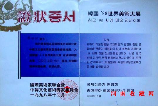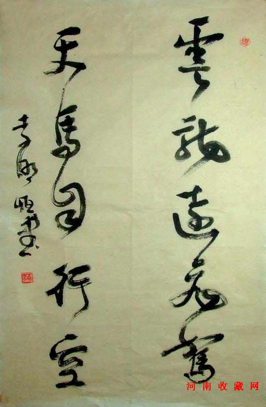 刘炳森:(原中国书协副主席),这次中国书协理事会在您河南召开,见到你很高兴。你和张海、王澄、俊杰同志都是河南出道早,有影响的书法家。河南书法很有前途,也希望你有前途,我送你幅作品,四个字“云鹤冲霄”共勉之。