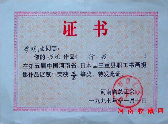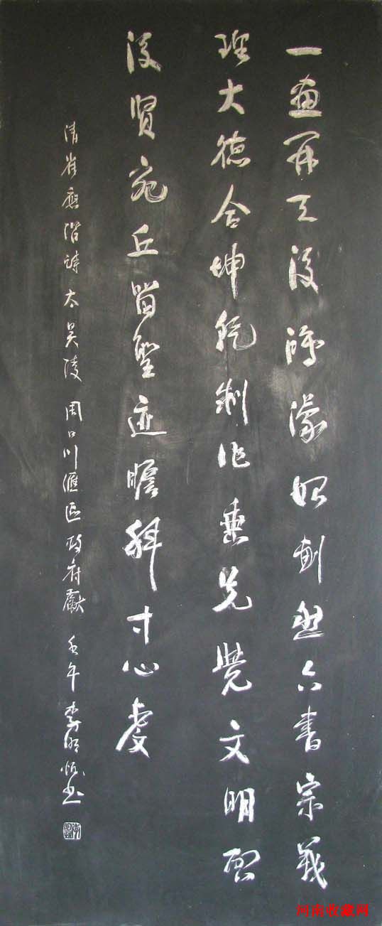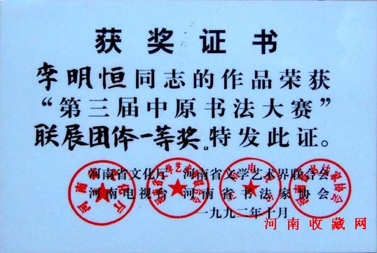 胡聚堂(河南书画院书画家),河南书法界都知道有个李明恒视艺术为生命,早些年他多次在全国全省书展得大奖,近几年他很少参加展览。他虚极守静,远遁尘嚣,潜心全面研究中国书法史,探求书法艺术的本源,作品格调越来越高。不少收藏家把目光投向他是很有远见的。